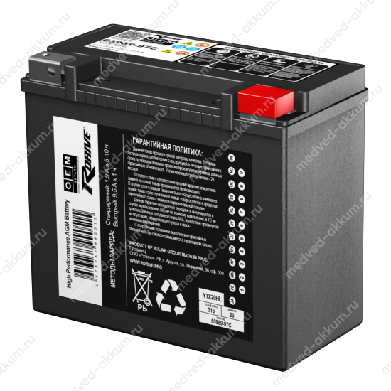 RDrive OEM AGM 20 Ач YTX20HL (65989-97C)